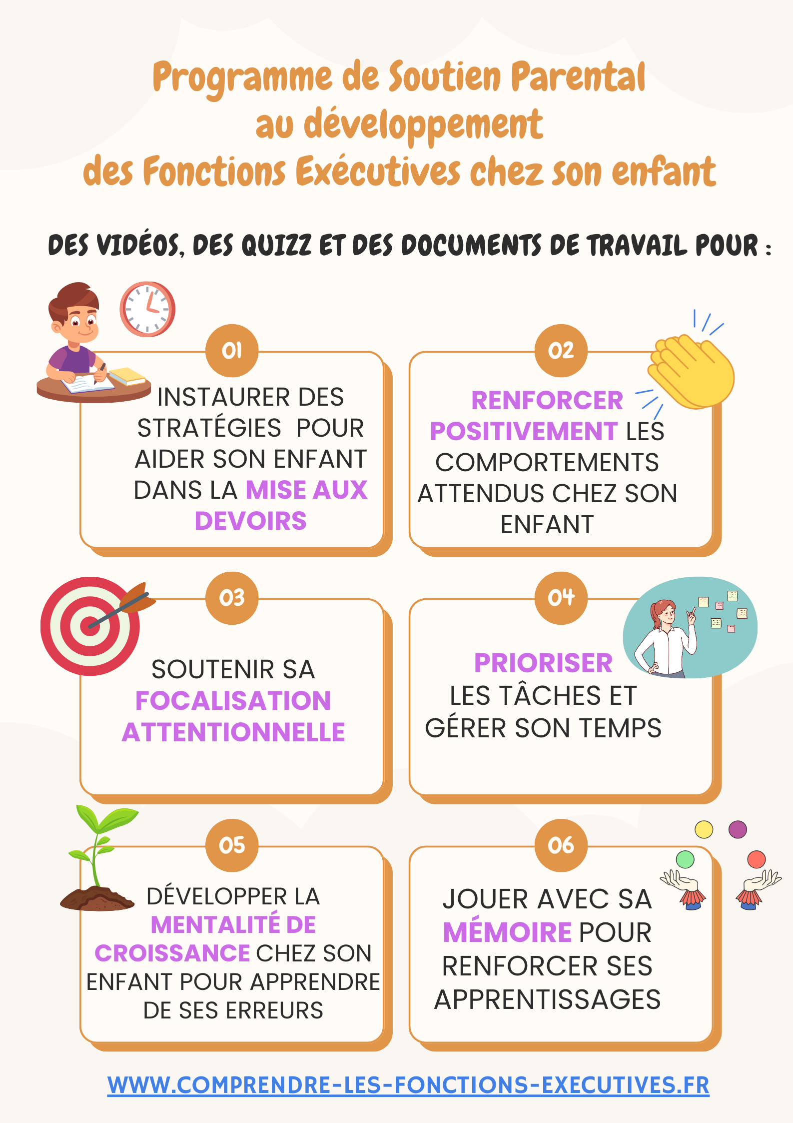 La mémoire de travail est la capacité à retenir temporairement des informations et les manipuler en même temps. Pour soutenir cette fonction exécutive, voici les conseils qui seront présentés :